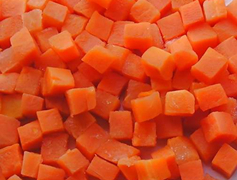 Frozen carrot diced is prepared fromclean, fresh material by sorting, washing, blanching, cooling, properly draining and IQF freezing. Our methods of processing IQF guarantee the freshness and flavor,with year-round availablity at competitive price.
